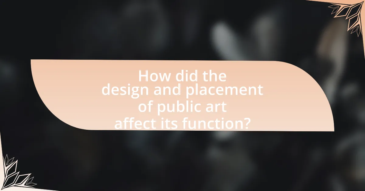 The design and placement of public art significantly influenced its function by enhancing visibility and accessibility, thereby fostering community engagement. For instance, sculptures and fountains strategically located in central squares served as focal points for social interaction and civic activities, reinforcing the town’s identity. Historical evidence shows that public art in medieval town squares often marked important locations, such as marketplaces or gathering spots, which facilitated communal gatherings and celebrations. This intentional design and placement not only beautified the space but also encouraged public participation and interaction, ultimately serving as a catalyst for social cohesion within the community.